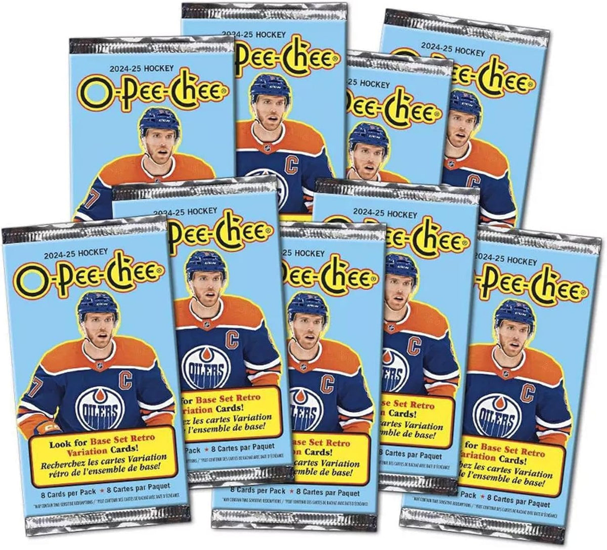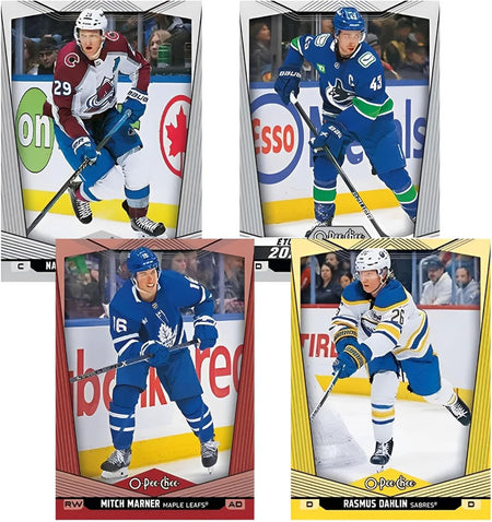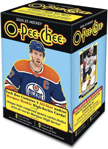 O-Pee-Chee boasts a comprehensive 600-card base set which includes a 100-card high-series subset featuring only 2023-24 All-Stars and 2024-25 Marquee Rookies. Every box contains, on average, four (4) All-Star and/or Marquee Rookie cards!