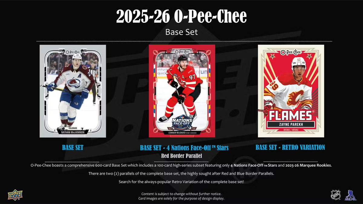 O-Pee-Chee boasts a comprehensive 600-card base set which includes a 100-card high-series subset featuring only 4 Nations Face-Off Stars and 2025-26 Marquee Rookies. Every box contains, on average, four (4) All-Star and/or Marquee Rookie cards!