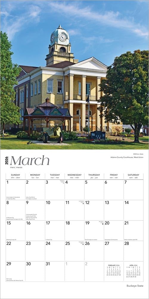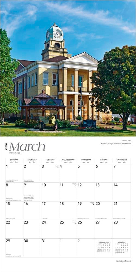 BrownTrout: Buckeye State: Ohio Places | 2026 12 x 24 Inch (Hanging) Monthly Square Wall Calendar