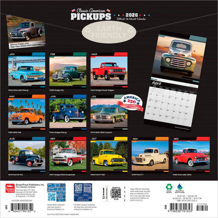 Browntrout: Classic American Pickups OFFICIAL | 2026 12 x 24 Inch (Hanging) Monthly Square Wall Calendar | Foil Stamped Cover | Plastic-Free
