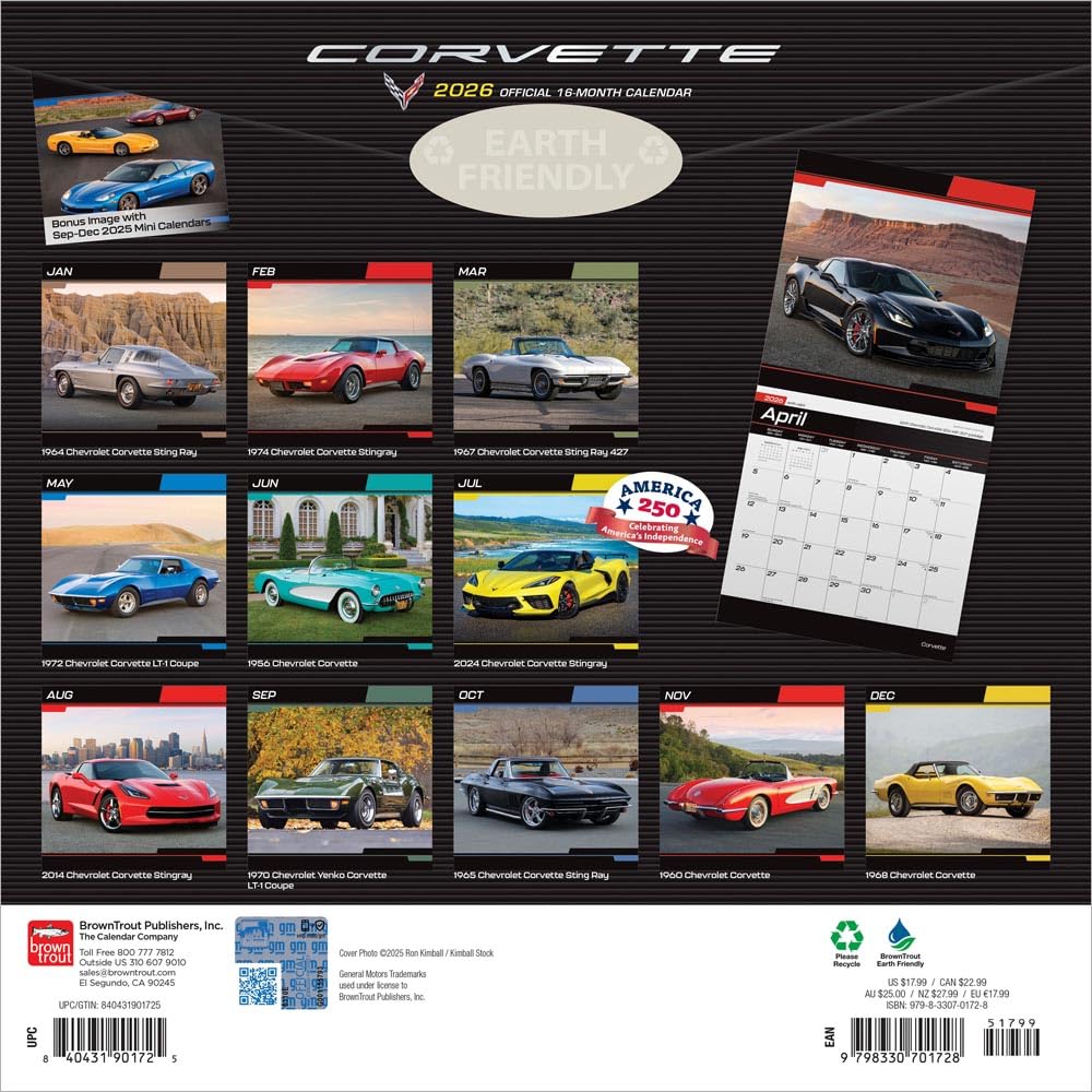 Browntrout: Corvette OFFICIAL: 2026 12 x 24 Inch (Hanging) Monthly Square Wall Calendar | Plastic-Free