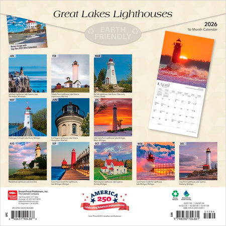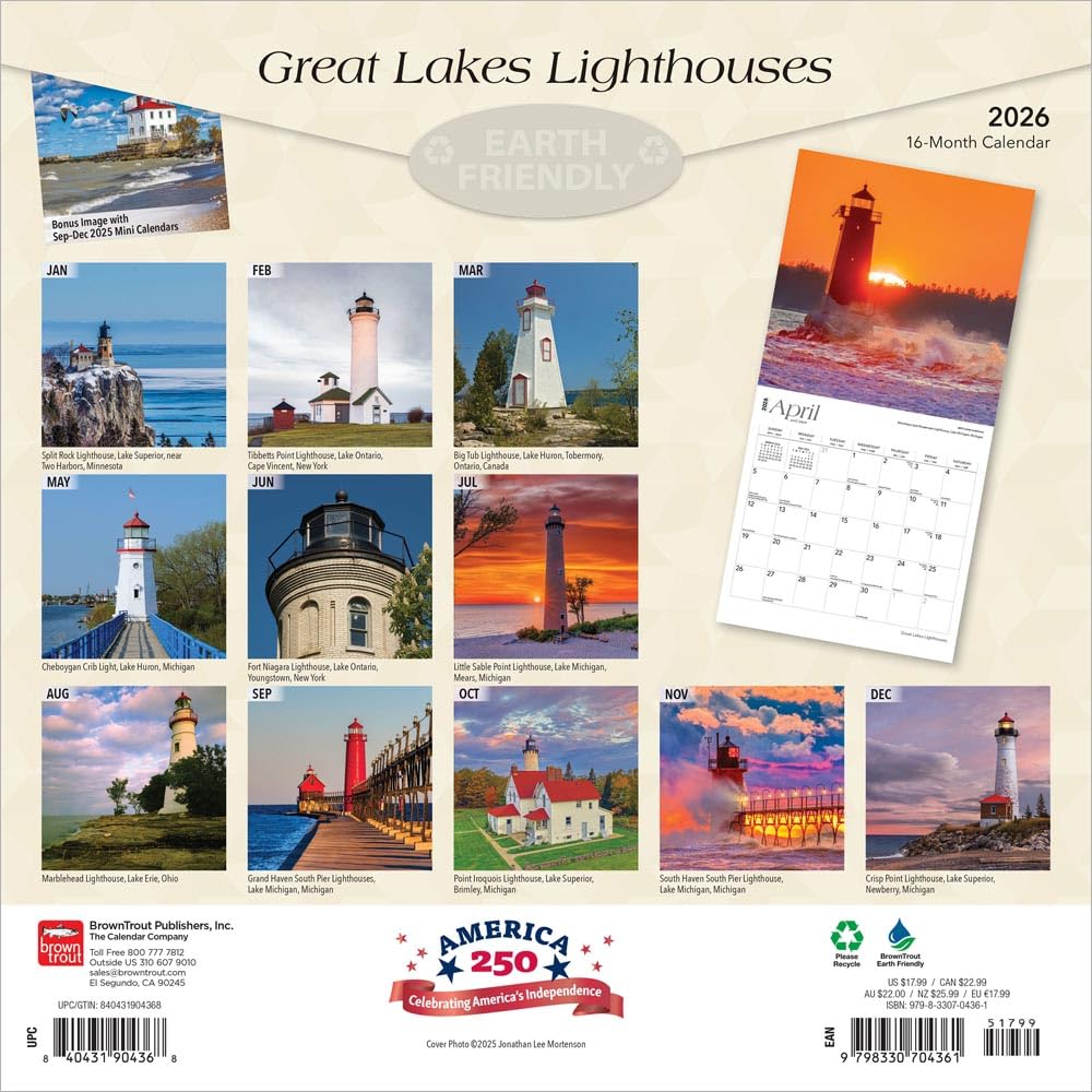 Browntrout: Great Lakes Lighthouses: 2026 12 x 24 Inch (Hanging) Monthly Square Wall Calendar