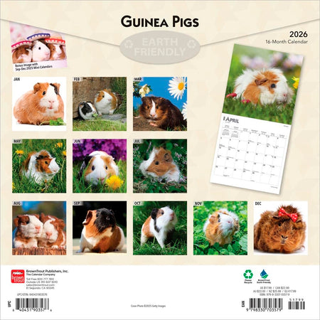 Browntrout: Guinea Pigs: 2026 12 x 24 Inch (Hanging) Monthly Square Wall Calendar | Plastic-Free