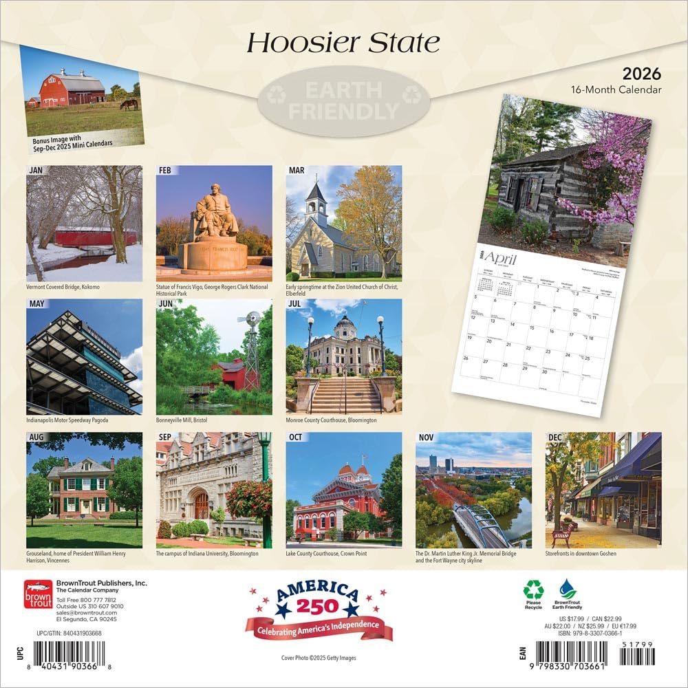 Browntrout: Hoosier State: Indiana Places | 2026 12 x 24 Inch (Hanging) Monthly Square Wall Calendar | Plastic-Free