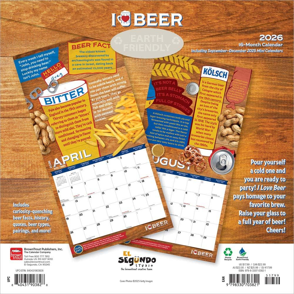 Browntrout: I Love Beer: 2026 12 x 24 Inch (Hanging) Monthly Square Wall Calendar