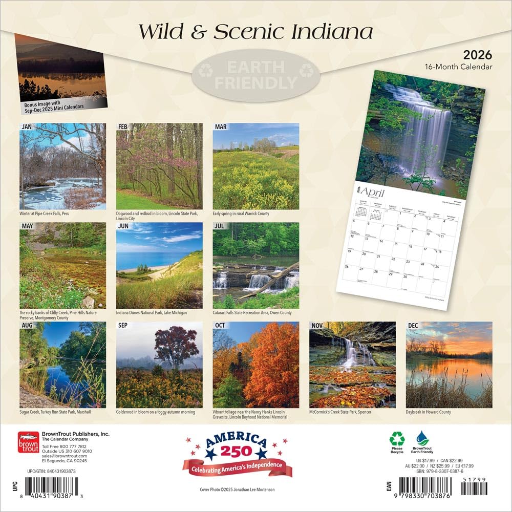 Browntrout: Indiana Wild & Scenic: 2026 12 x 24 Inch (Hanging) Monthly Square Wall Calendar