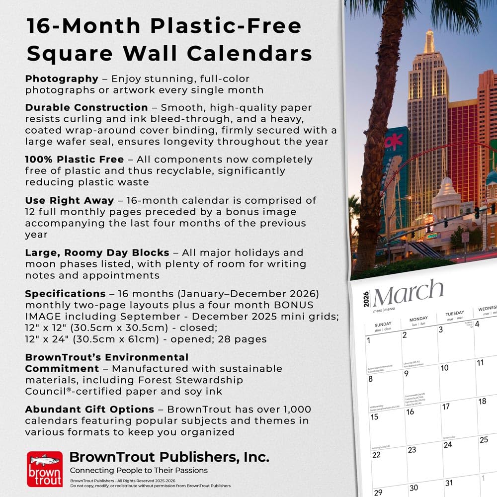 BrownTrout: Las Vegas: 2026 12 x 24 Inch (Hanging) Monthly Square Wall Calendar