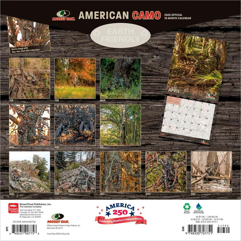 Browntrout: Mossy Oak American Camo OFFICIAL: 2026 12 x 24 Inch (Hanging) Monthly Square Wall Calendar