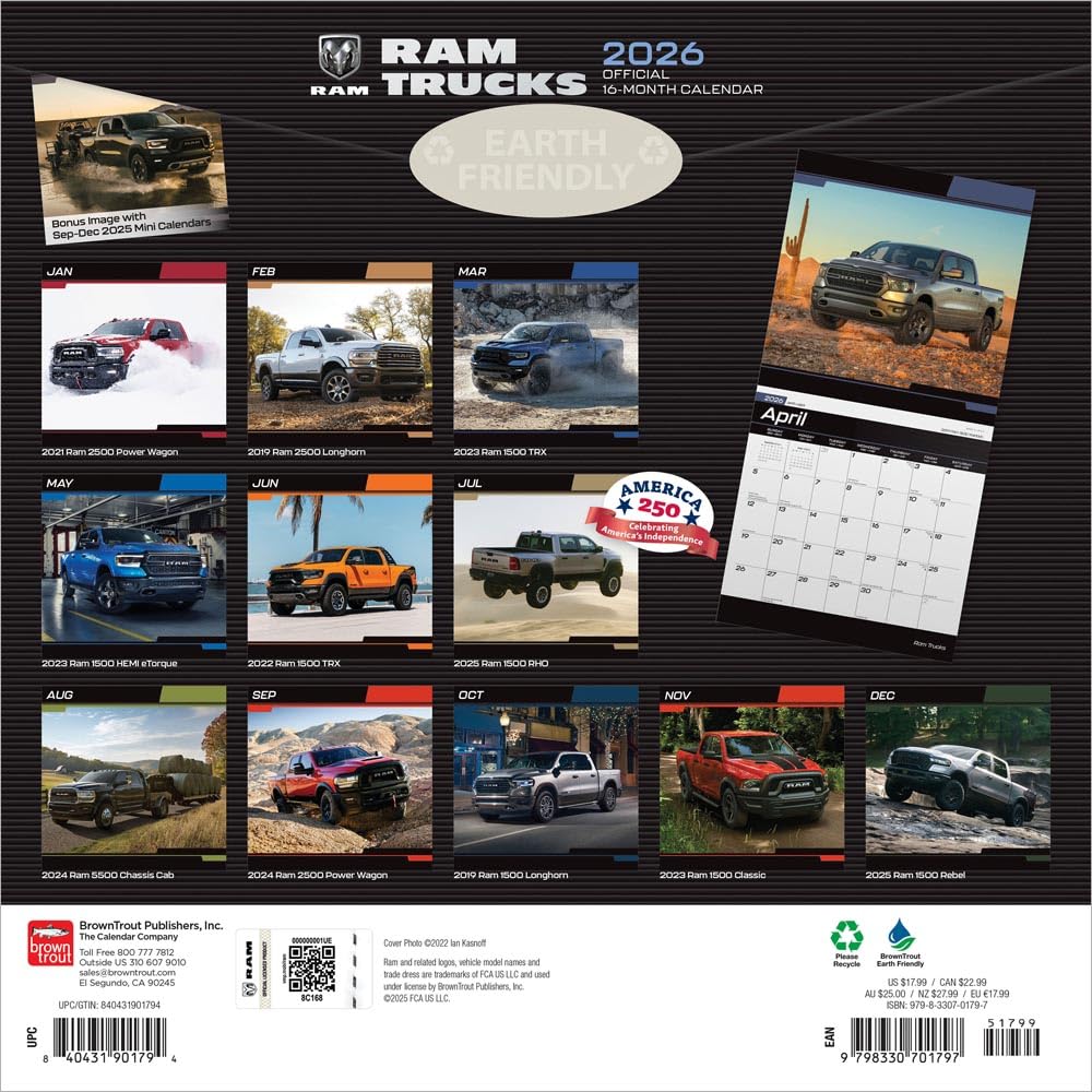 Browntrout: Ram Trucks OFFICIAL: 2026 12 x 24 Inch (Hanging) Monthly Square Wall Calendar | Foil Stamped Cover