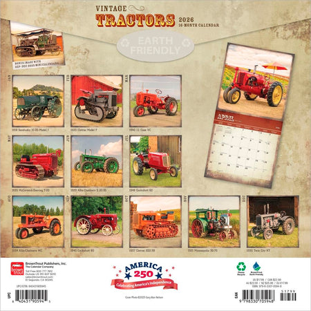 Browntrout: Vintage Tractors: 2026 12 x 24 Inch (Hanging) Monthly Square Wall Calendar