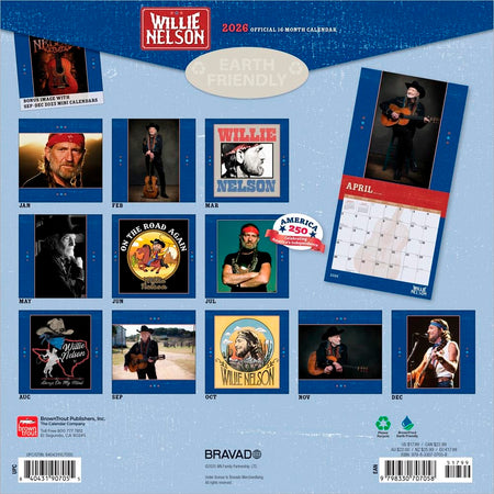 Browntrout: Willie Nelson OFFICIAL: 2026 12 x 24 Inch (Hanging) Monthly Square Wall Calendar