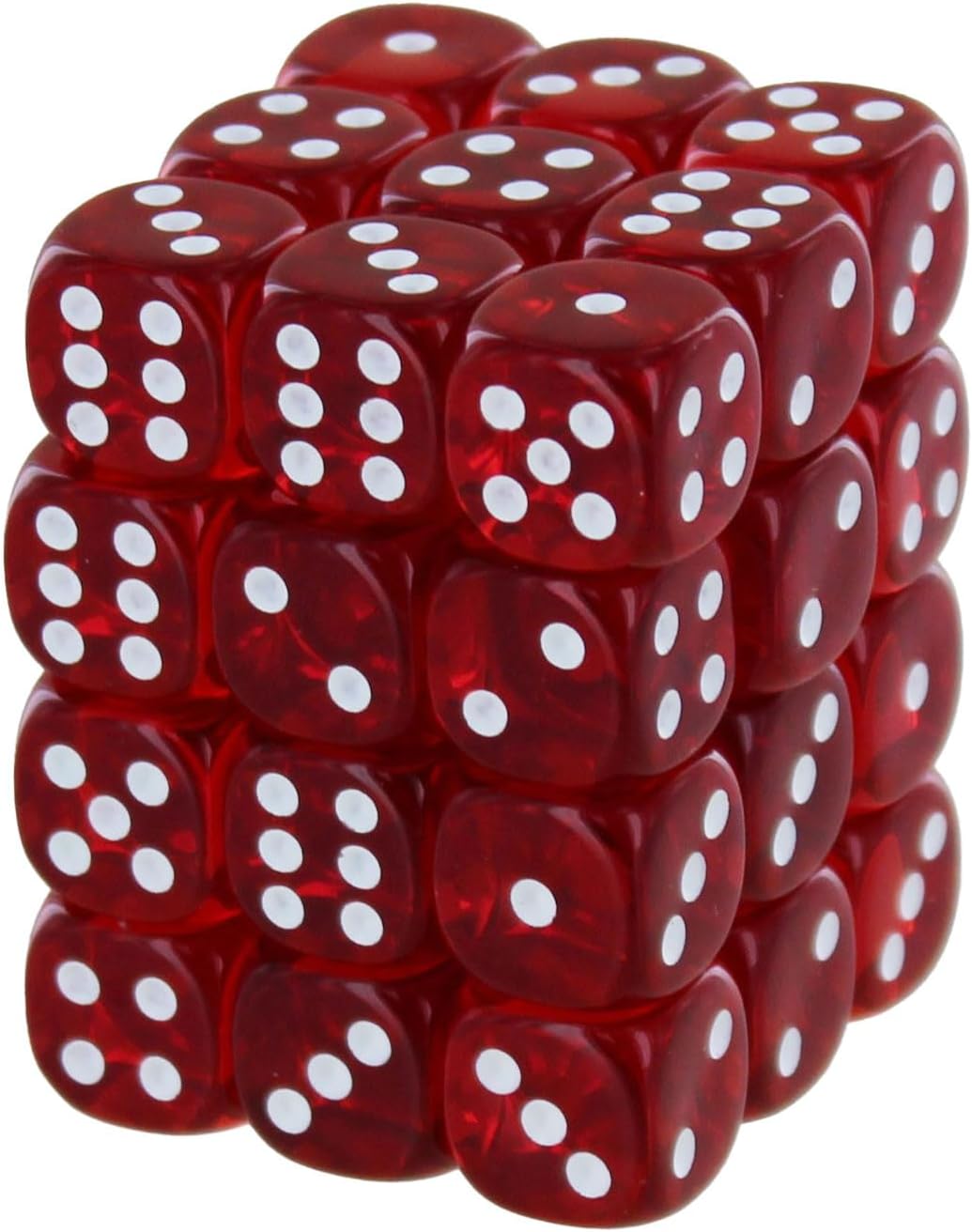 Chessex 12mm Translucent Red and White Plastic Polyhedral Dice Set Includes 36 Dice