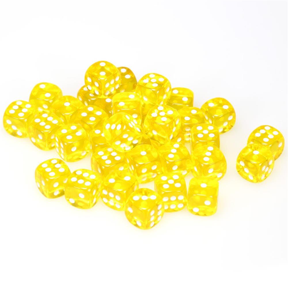 Chessex 12mm Translucent Yellow and White Plastic Polyhedral Dice Set includes 36 Dice