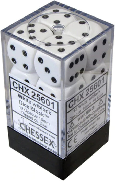 Chessex 16mm Opaque White and Black Plastic Polyhedral Dice Set Includes 12 Dice