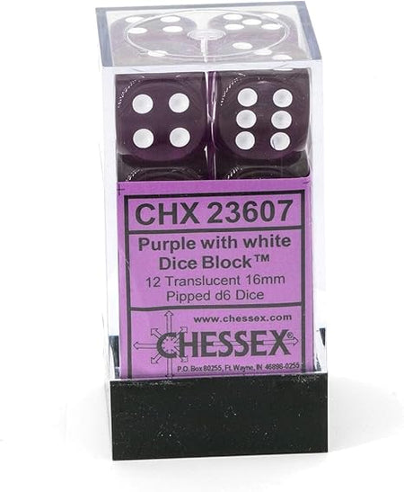 Chessex 16mm Translucent Purple and White Plastic Polyhedral Dice Set Includes 12 Dice