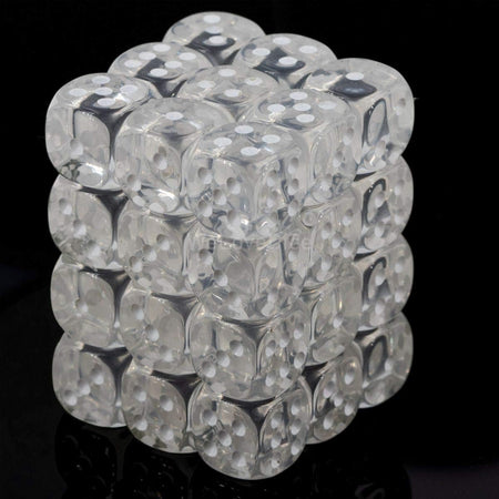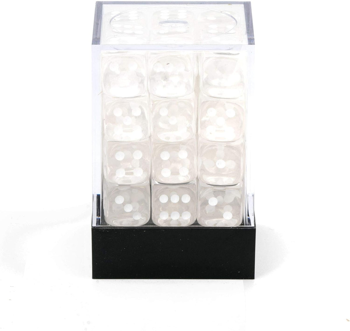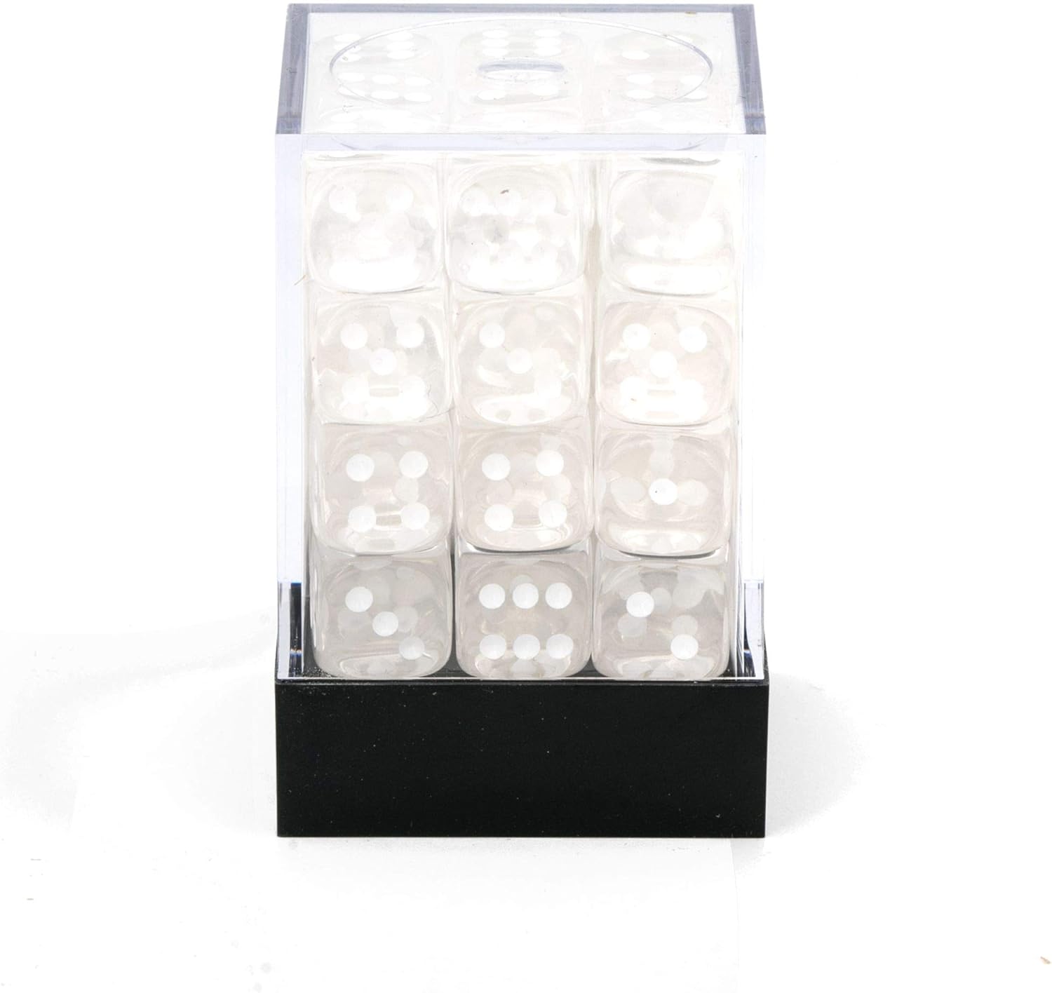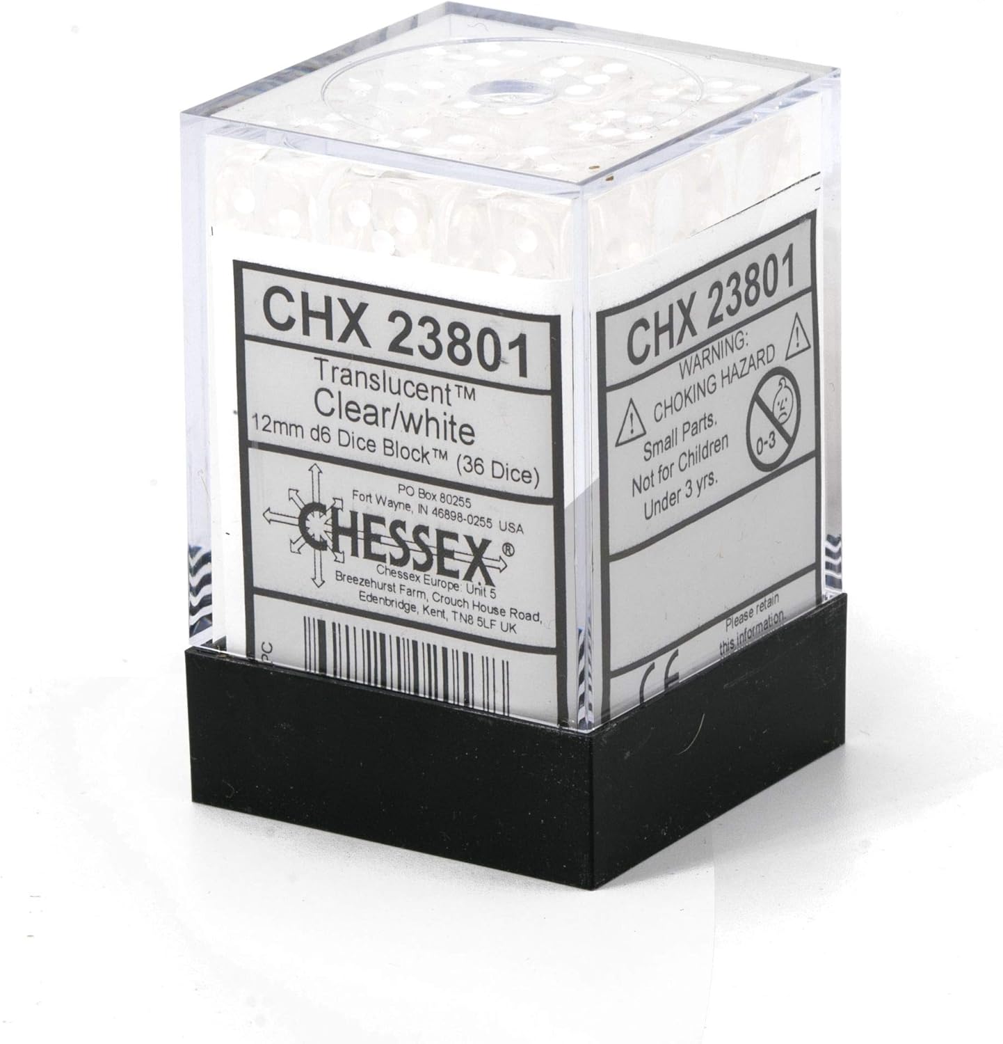 Chessex Dice-12mm Translucent Clear and White Plastic Polyhedral Dice Set 36 Dice