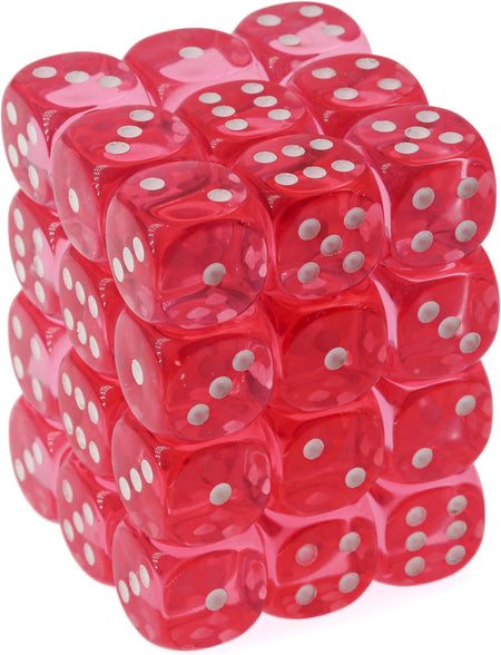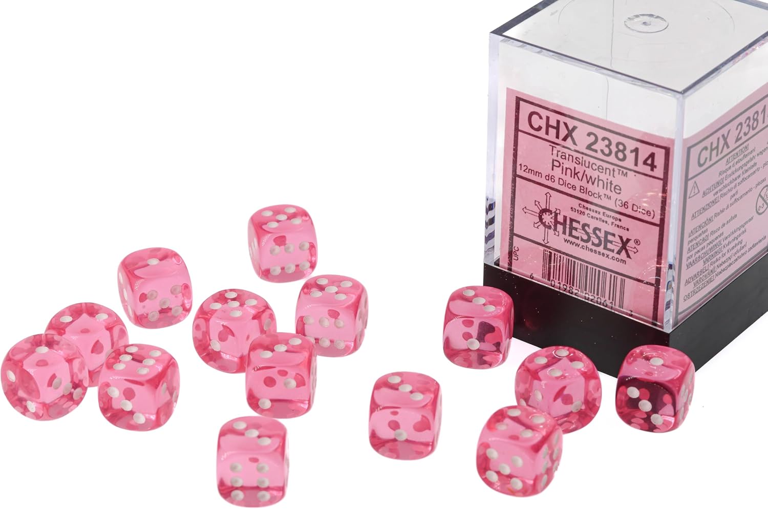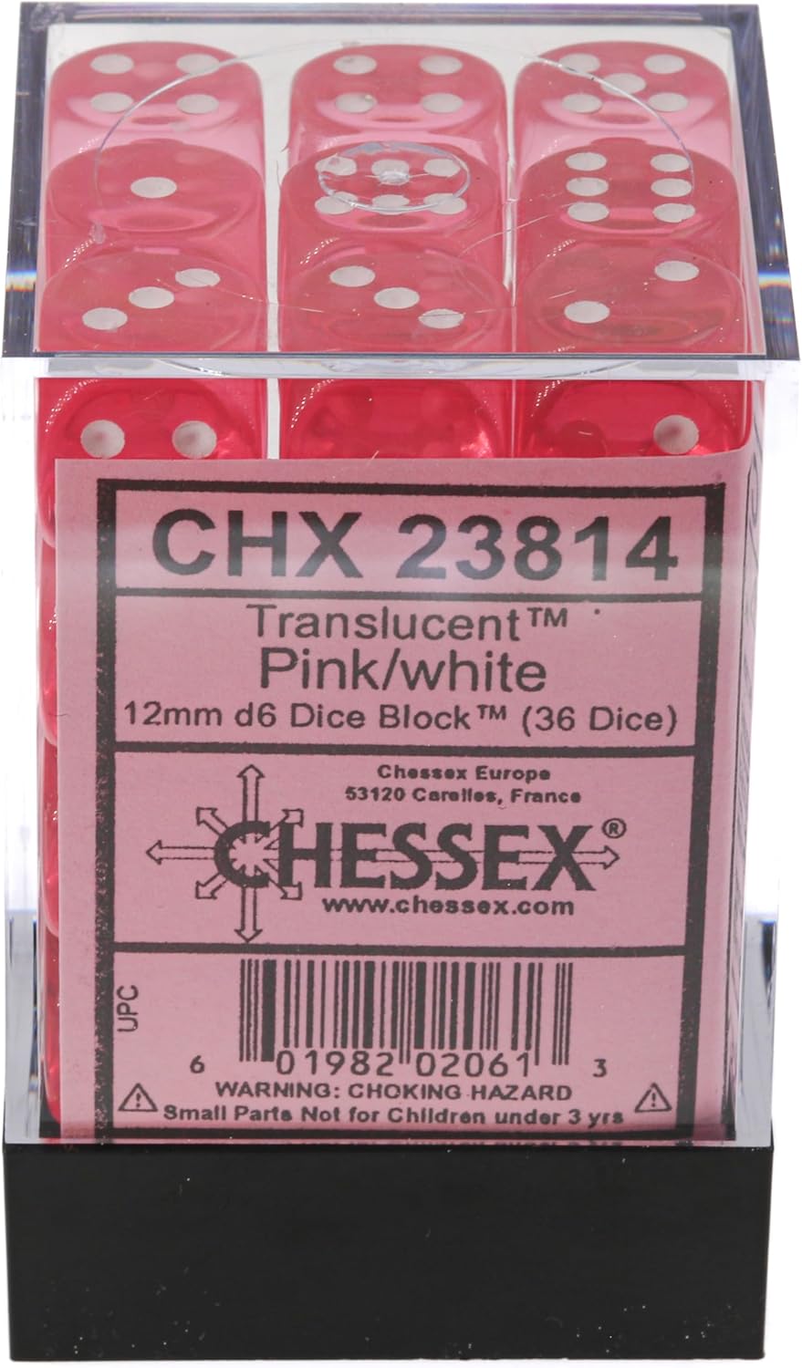 Chessex Pink Translucent D6 Dice with White Pips 12mm (1/2in) Pack of 36