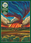 Amazement by William Haskell is a vibrant masterpiece that captures the awe of nature’s power. In this 1000 piece puzzle, a towering blue cloud spirals skyward from rugged mountain peaks, stopping a lone cowboy and his horse in their tracks as they journey across the desert. The striking colors and dramatic scene evoke a sense of wonder and respect for the untamed beauty of the wild. Perfect for puzzle lovers and art enthusiasts alike!