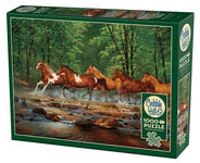 The horses are off on their Spring Creek Run, ready to gallop through the forest to reach lush fields on the other side! This 1000 piece puzzle by artist Chris Cummings captures the spirit of wild beauty and freedom, showcasing majestic horses in a breathtaking natural landscape. Perfect for wildlife and nature lovers, each piece brings you closer to the thrill of the open fields and the heart of freedom!