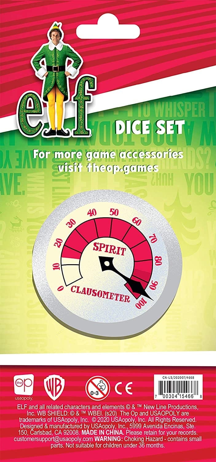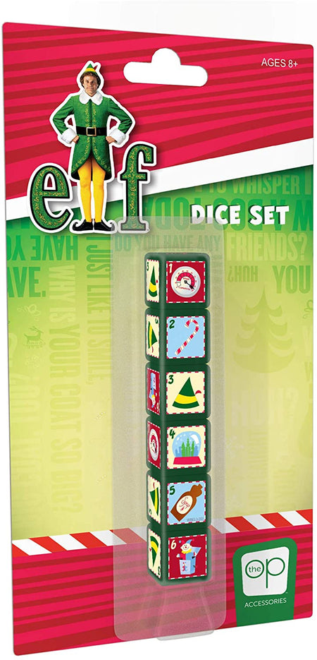 - Collectible Elf 6-sided dice set featuring your favorite characters – Christmas Cheer level, Candy cane, Buddy’s hat, Snow globe, Syrup, Jack-in-the-Box