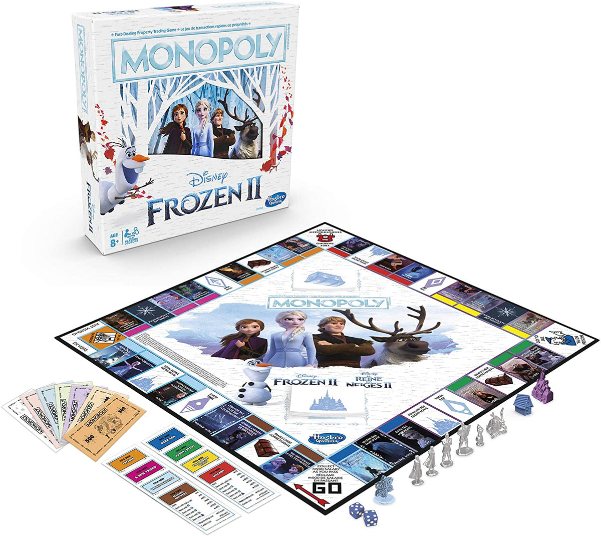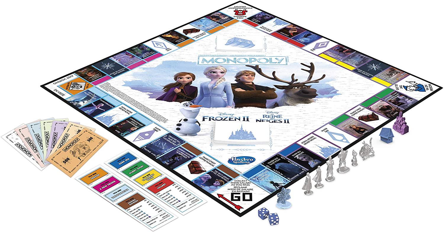- MONOPOLY GAME: DISNEY FROZEN 2 EDITION: Fans of Disney's Frozen 2 can enjoy playing this edition of the Monopoly board game that celebrates Anna and Elsa's journeys through Arendelle and beyond