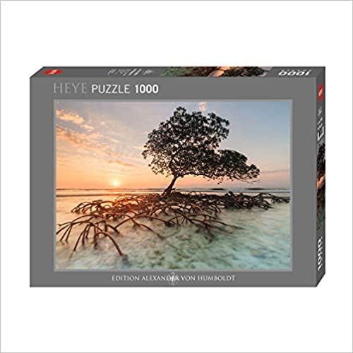 In the 1000-piece jigsaw puzzle, Red Mangrove by Heye, a mangrove on the ocean is depicted while the sun sets on the horizon. This landscape scene captures a very peaceful aspect of nature. This adult level puzzle has dimensions of 27.5" x 19.6" which makes this the perfect activity for a long and quiet weekend!