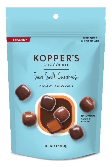 Kopper's: Milk & Dark Chocolate Sea Salt Caramels 4 oz. Bag