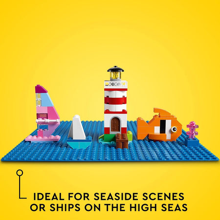 Lay the foundations for creative play with the LEGO Classic Blue Baseplate (11025). Measuring over 9.5 in. (25cm) square, this high-quality toy-building base gives kids a spacious 32x32-stud LEGO landscape on which to build, play and display. Inspire LEGO builders with an endless array of building possibilities, from seaside settings with sunny swimming pools to sailing ships on the high seas! What’s more, this quality baseplate has enough grip to hold LEGO building bricks at any angle – even upside down! So when the building stops, the firm grip gives kids a collapse-free way to transport and display their creations. LEGO Classic sets put self-expression and open-ended play into kids’ hands. And as they build, create and imagine, their free-thinking and problem-solving skills keep on growing! Contains 1 piece.