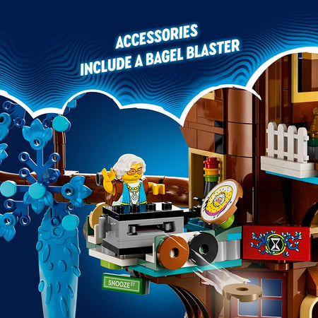 - Fun Features – The LEGO DREAMZzz Fantastical Tree House features Mrs. Castillo’s kitchen, Izzie and Mateo’s bedroom and a living room, plus a lookout tower and a swing. Details include Mrs. Castillo’s toaster, which can become a bagel blaster, and Mateo’s dream paint bottles.
