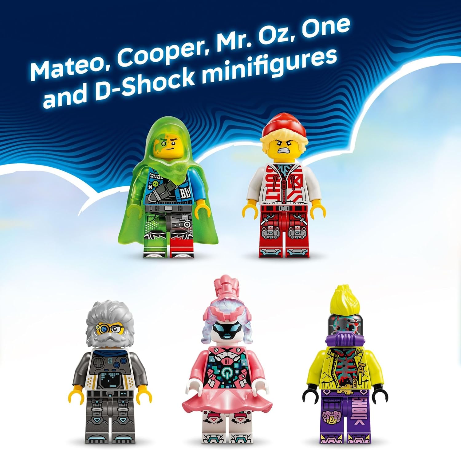 - 5 LEGO DREAMZZZ MINIFIGURES – This creative playset includes a huge cast of characters, with minifigures of Mateo, Cooper, Mr. Oz, One, and D-Shock, plus an Albert figure and 2 Cyber Brain Spider figures