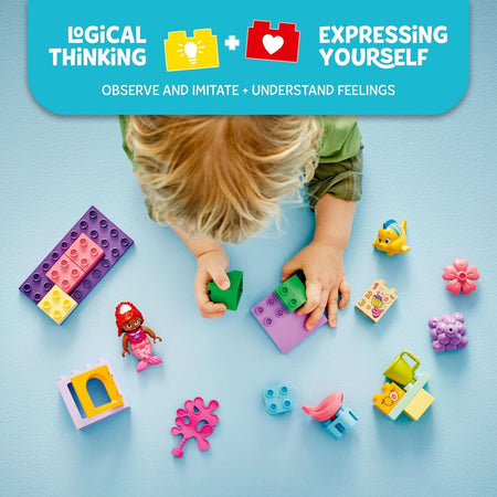 - 2 familiar characters – This role-play Little Mermaid toy for preschool kids comes with 2 LEGO DUPLO figures: Ariel and Flounder from the Disney Junior TV show Ariel.