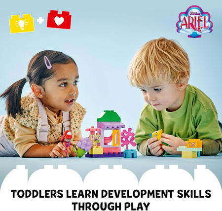 This kids' learning toy, which encourages imagination, lets grown-ups and preschool kids share moments of creative building. Toddlers observe and imitate as they create adventures for the 2 LEGO DUPLO figures: Ariel and Flounder. They begin to understand feelings by labelling the emotions a character might experience in the play situation. This educational toy building set also helps develop logical thinking as toddlers assemble the easy-to-handle bricks to recreate scenes from the TV show. Contains 24 pieces.