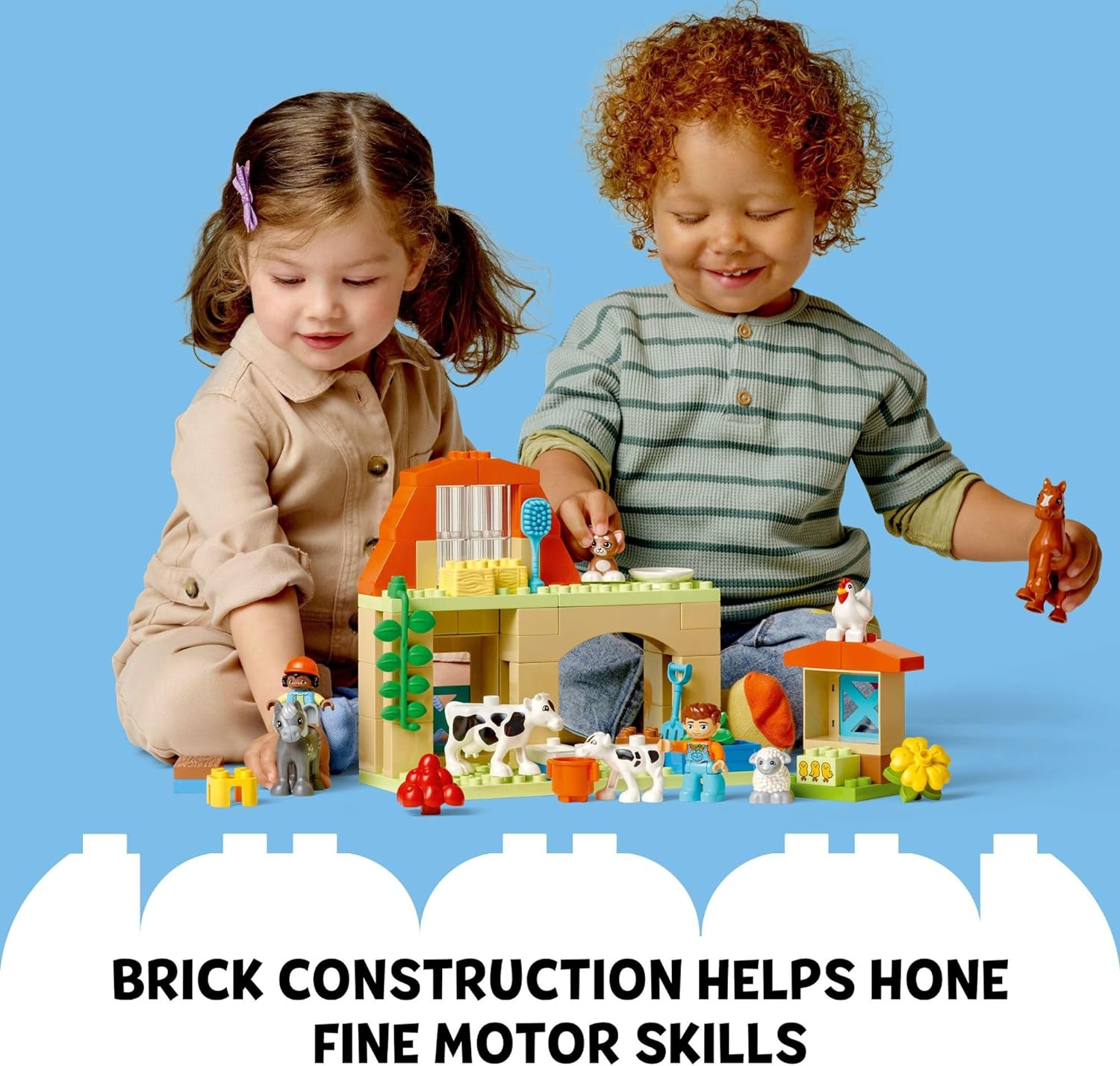 - Kids’ learning toy for 2+ years and up – The LEGO DUPLO Town Caring for Animals at the Farm toy lets boys and girls role play life as a busy farmer.