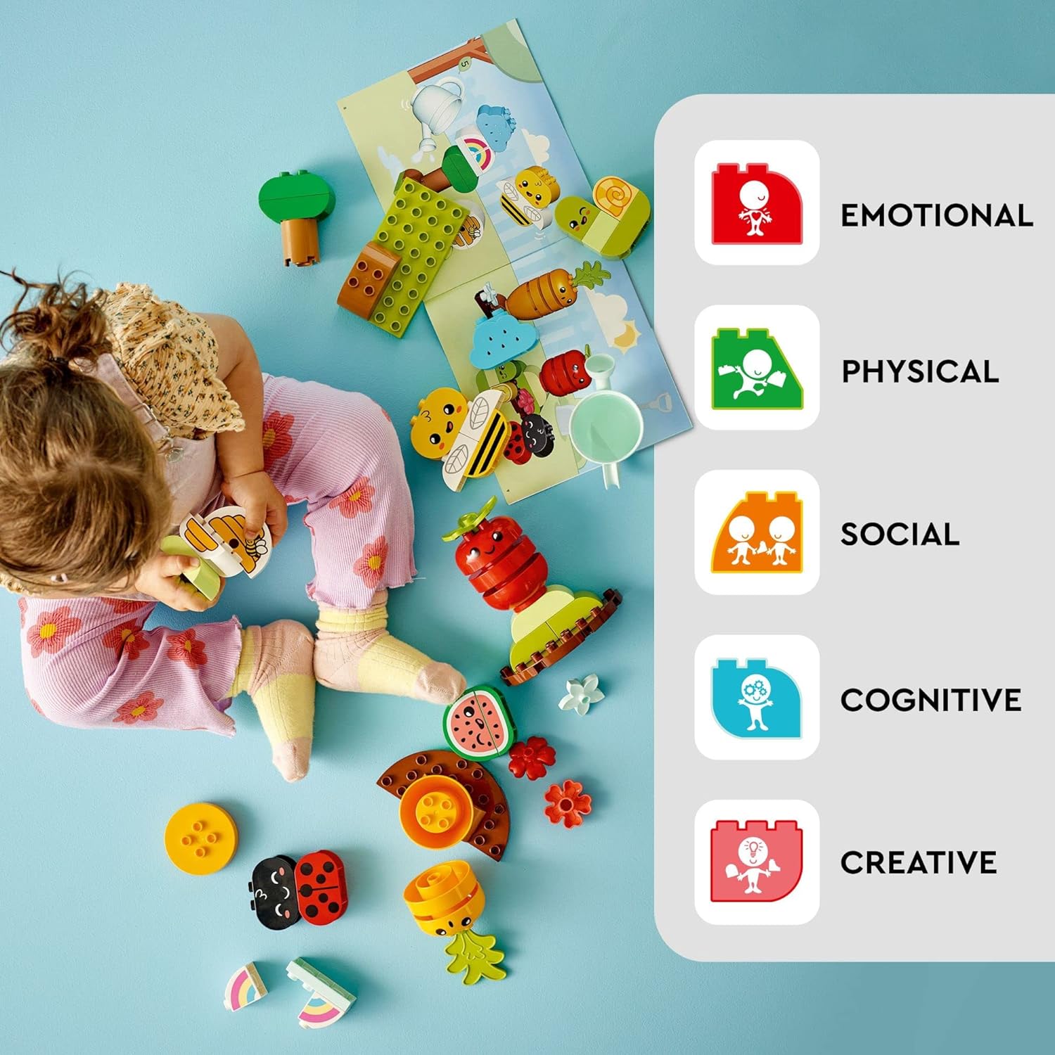 - Teach babies and toddlers age 1.5+ about nature, creatures and how plants grow in the garden with this LEGO DUPLO Organic Garden learning toy set.