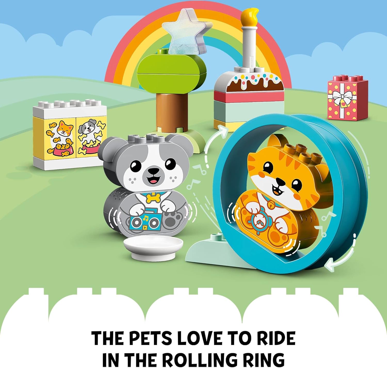 - This LEGO DUPLO pet animal toy set includes buildable kitten and puppy toys for toddlers that make realistic sounds plus a pet play hoop.