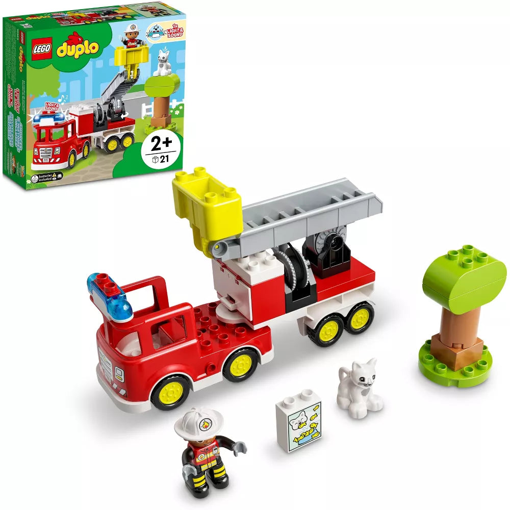 Authentic details – The set includes a firefighter and a cat LEGO DUPLO figures, plus a buildable tree and a multi-function fire truck with flashing lights and siren (batteries included)