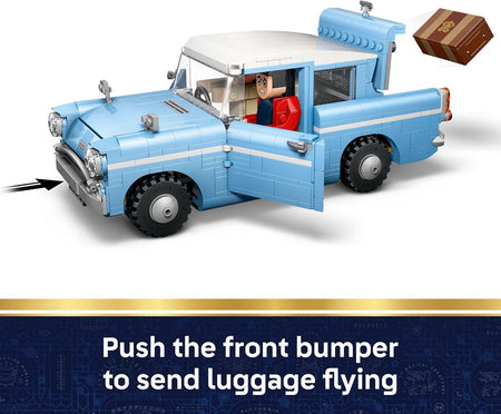 Teens can bring the magic of the Weasleys' flying car to life with the LEGO Harry Potter Enchanted Flying Ford Anglia (76470) building toy for boys and girls ages 14 years old and up. This car toy building set is the most detailed LEGO interpretation of the iconic vehicle. Place brick-built Ron Weasley and Harry Potter figures in the car with Harry's pet Hedwig to bring Harry Potter and the Chamber of Secrets scenes to life. Activate magical functions to make the trunk and doors open and send our heroes' luggage flying out of the trunk, just like in the movie.