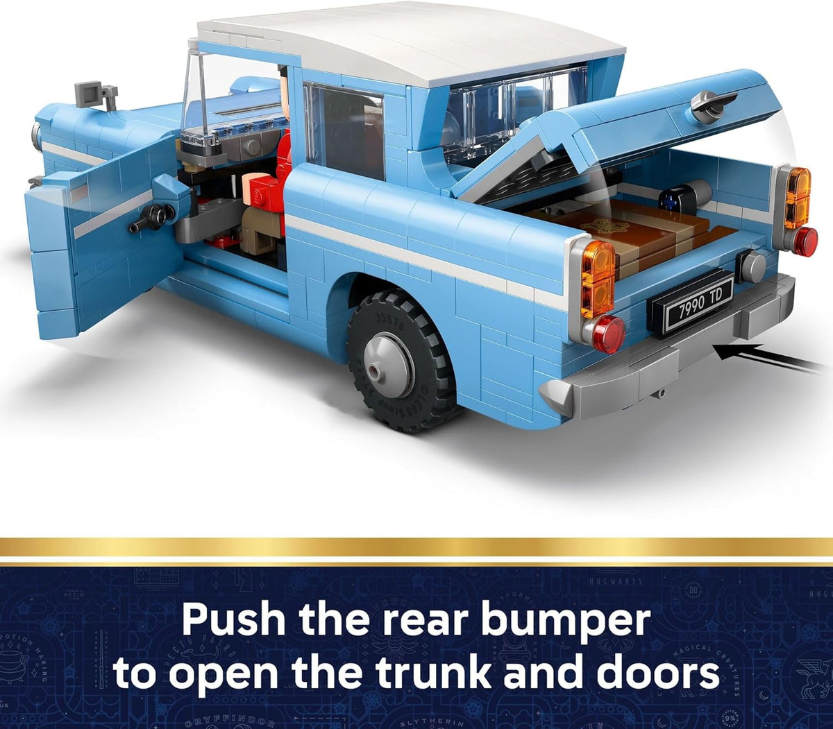 - MAGICAL FEATURES & FUNCTIONS – Push the rear bumper to make the trunk and doors open and push the front bumper to eject luggage from the trunk, like in Harry Potter and the Chamber of Secrets