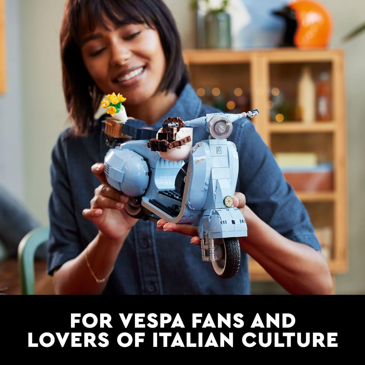 - Assemble your own displayable, 2-seat LEGO Vespa 125 scooter model of an Italian icon with this LEGO building set for adults.