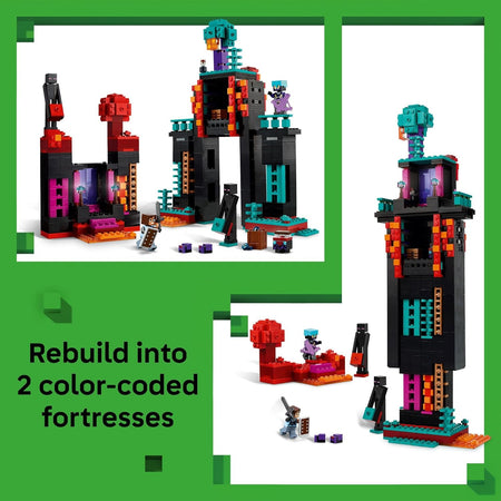 - AUTHENTIC GAMING DETAILS – This set of building blocks for kids features warped forest and crimson forest biomes, a crafting table, an enchanting table, and storage for Ender pearls from the LEGO Minecraft universe