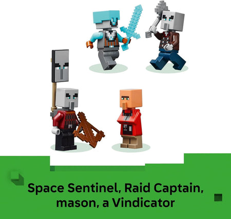 - 4 LEGO MINECRAFT Minifigures – Kids can recreate their favorite game scenes with Raid Captain, Space Sentinel, mason villager, and Vindicator, plus accessories including a LEGO Minecraft pig figure, a training dummy, a torch, carrot, and an iron ingot