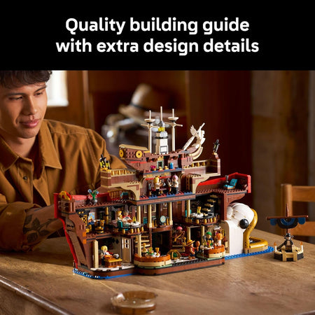 Welcome to the Baratie, where culinary dreams and pirate legends are forged! This extraordinary LEGO ONE PIECE building set invites adult fans to construct the iconic floating restaurant where Sanji's journey with the Straw Hat crew began. Immerse yourself in the East Blue saga as you meticulously craft the ship-shaped establishment with its distinctive fish figurehead and multiple interior spaces.