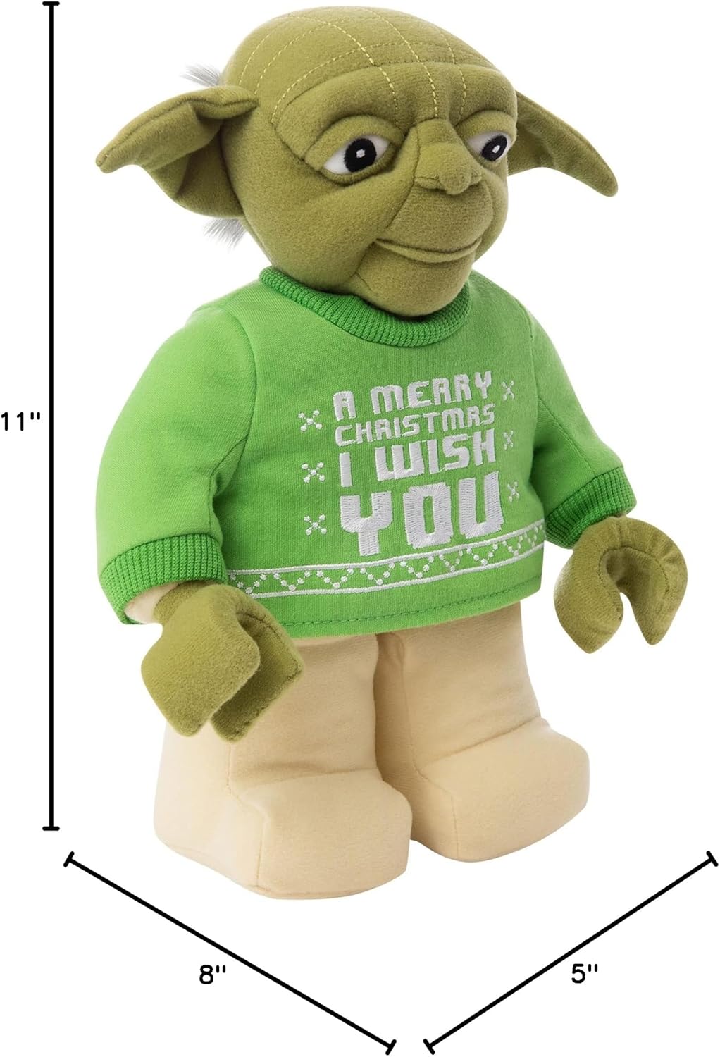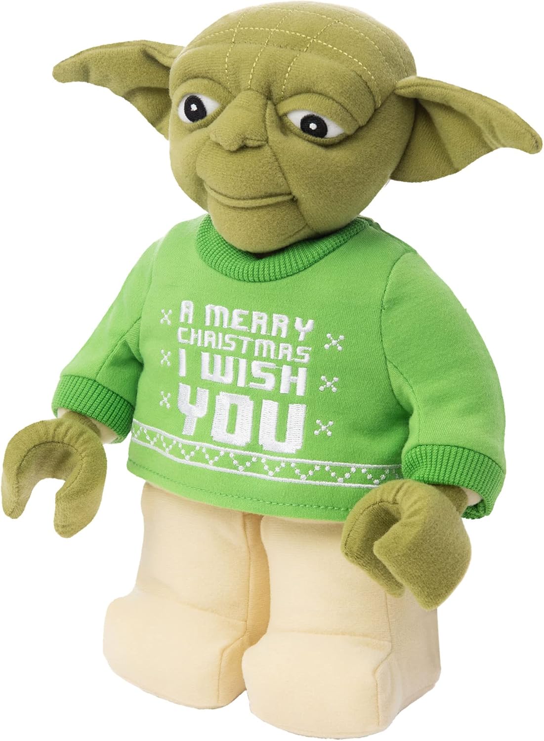 - STUFFED PLUSH LEGO HOLIDAY COLLECTION: Accentuated with a light green Christmas sweater, Yoda possesses character traits inspired from the Star Wars movies and LEGO Minifigures.