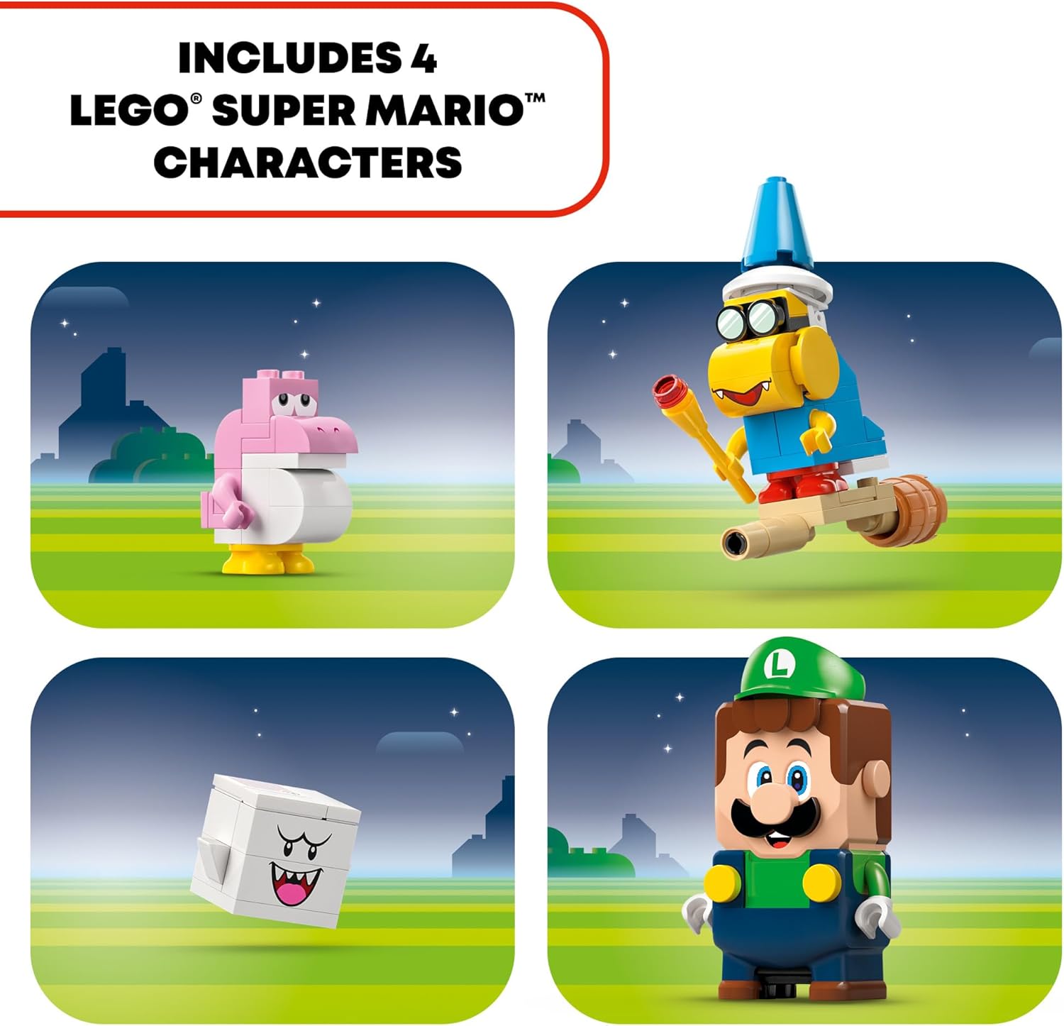 - 4 LEGO Super Mario figures – This Nintendo collectible playset includes an interactive LEGO Luigi toy figure, plus Kamek, a Pink Baby Yoshi and a Boo.
