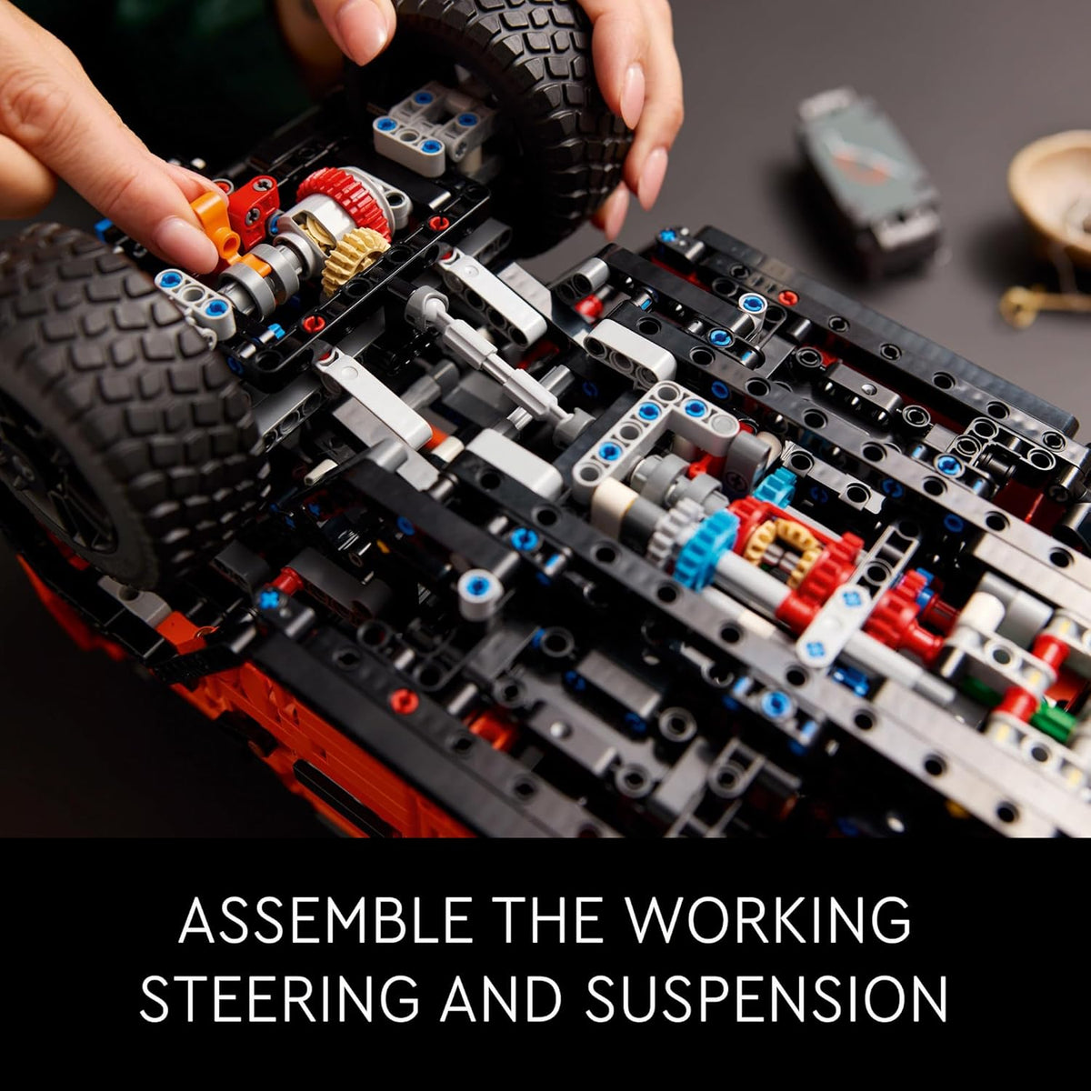 Commemorate the 45th anniversary of one of the world’s best loved off-roaders with this immersive LEGO Technic Mercedes-Benz G 500 PROFESSIONAL Line model car building set for adults. This model car version of the iconic G-Class is packed with authentic features and cool functions to quicken the pulse of any Mercedes-Benz fan. Take your time assembling details like the working steering and the raised suspension. Prop open the G-Wagon's hood to check out the 6-cylinder in-line piston engine. Then try out the gearbox with its drive, neutral and reverse settings. Test the 2 differential locks, then open the doors to see the detailed interior.
