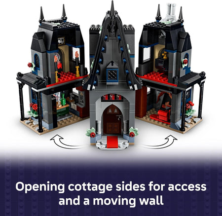 The LEGO Wednesday Morticia's Cottage (76786) building toy for girls and boys 10 years old and up brings the mysterious world of Wednesday Addams to life with a spooky setting straight out of the hit show! Endless play possibilities await behind the doors of this 6-room, 2-floor cottage, outfitted with a fully equipped kitchen, living room with removable fireplace wall, bedroom, séance room, and bathroom complete with sword accessories for epic pretend duels!