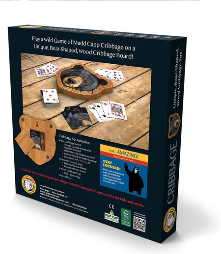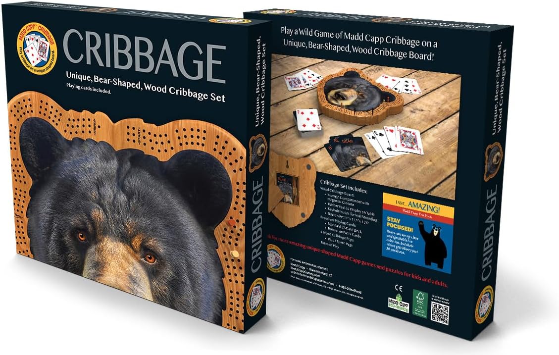 - AWE-INSPIRING: Madd Capp I AM BEAR Animal Shaped Cribbage Board is big and beautiful with a keyhole notch in back for hanging on the wall. Board size 11" x 11.5" X 1.25".