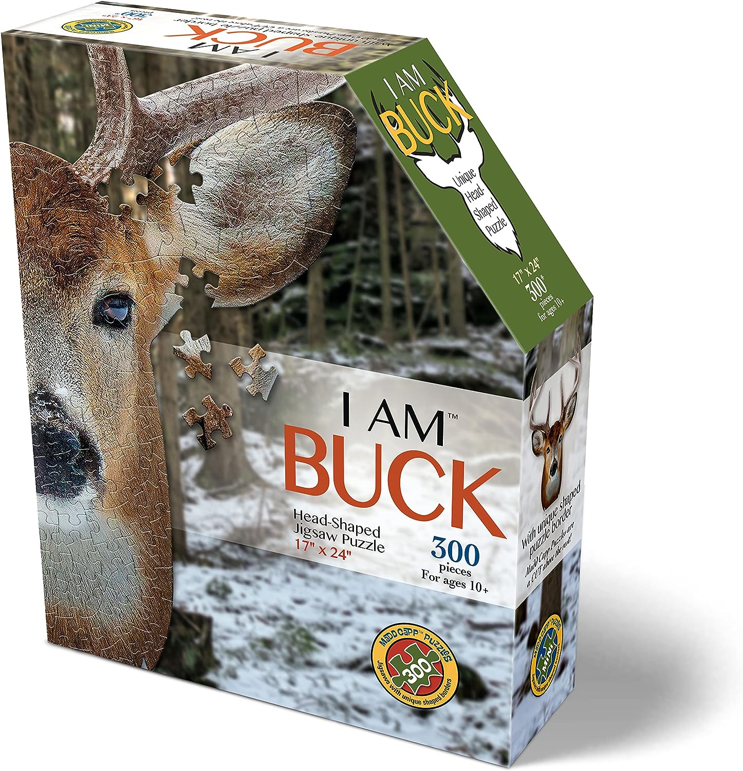 - AWARD-WINNING AND AWE-INSPIRING, Madd Capp puzzles are big and beautiful and way more fun than your average 300-piece jigsaw! I AM BUCK has an animal-shaped border (17" x 24" assembled).
