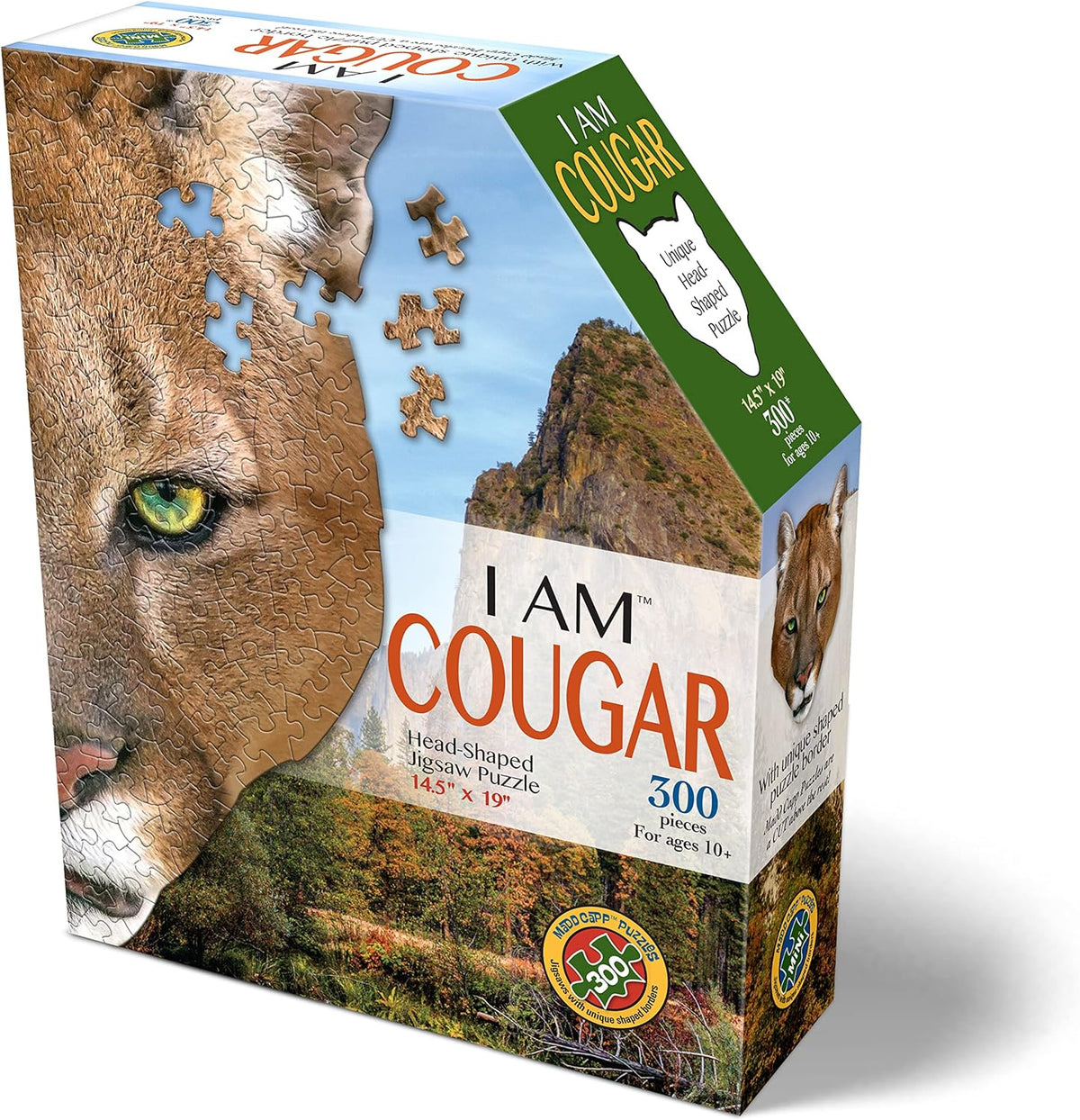 - AWARD-WINNING AND AWE-INSPIRING, Madd Capp puzzles are big and beautiful and way more fun than your average 300-piece jigsaw! I AM COUGAR has an animal-shaped border (15" x 19" assembled).