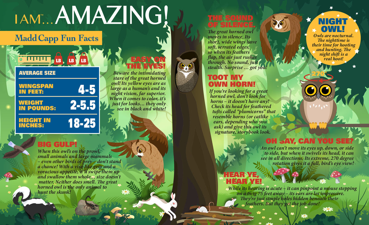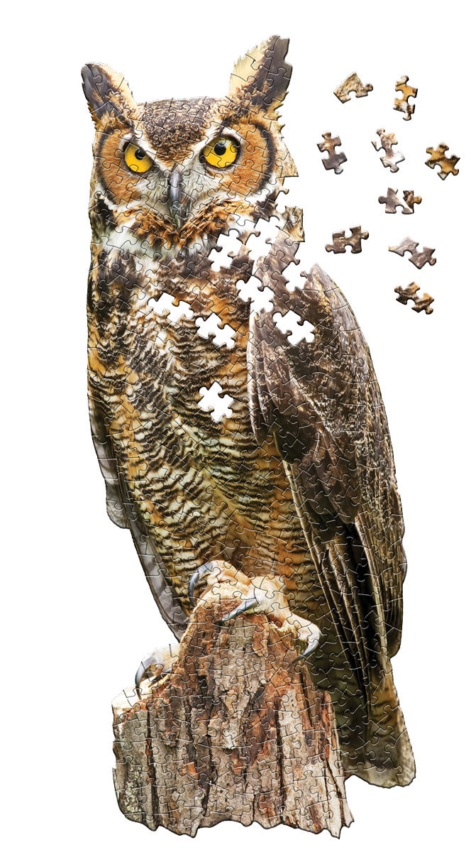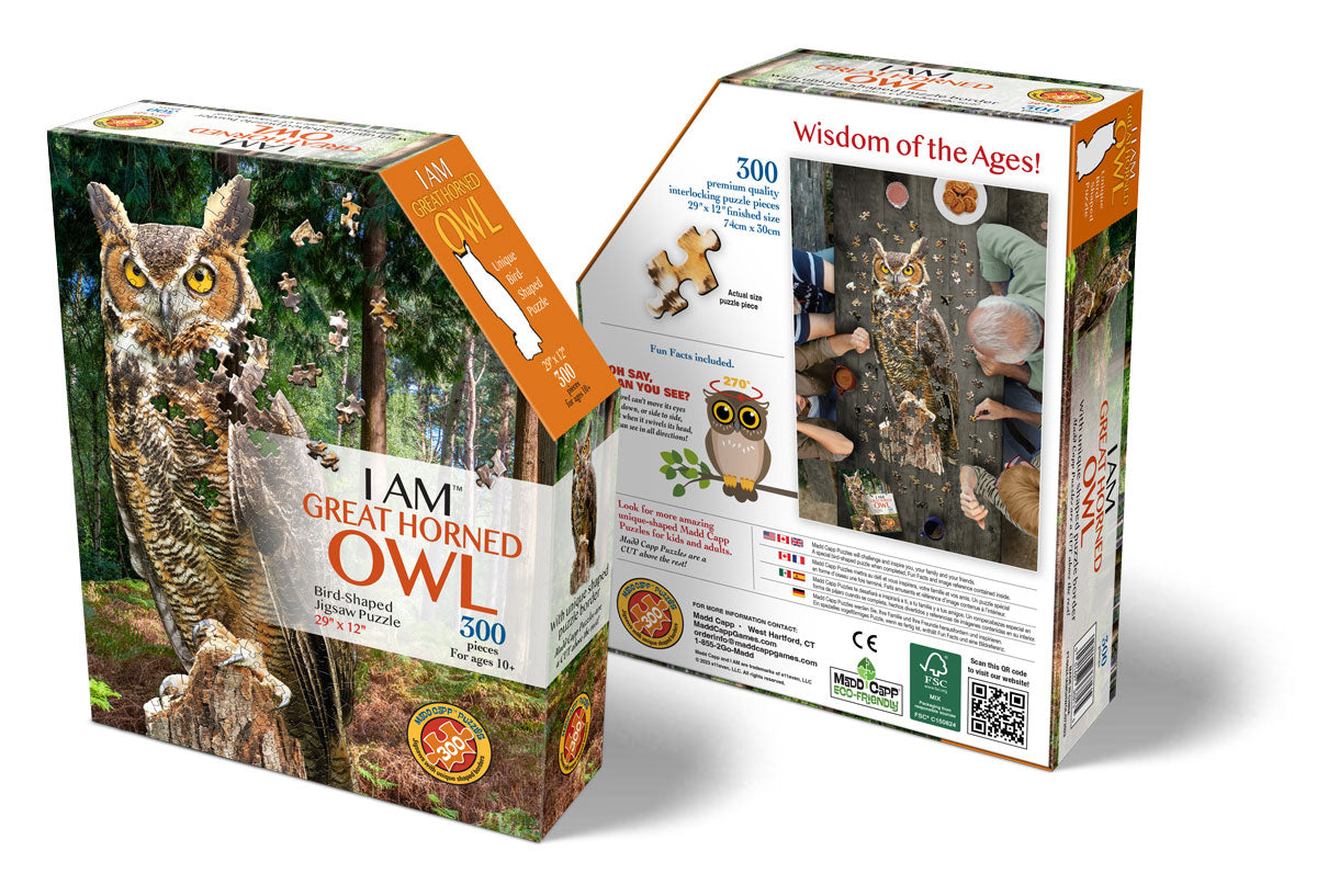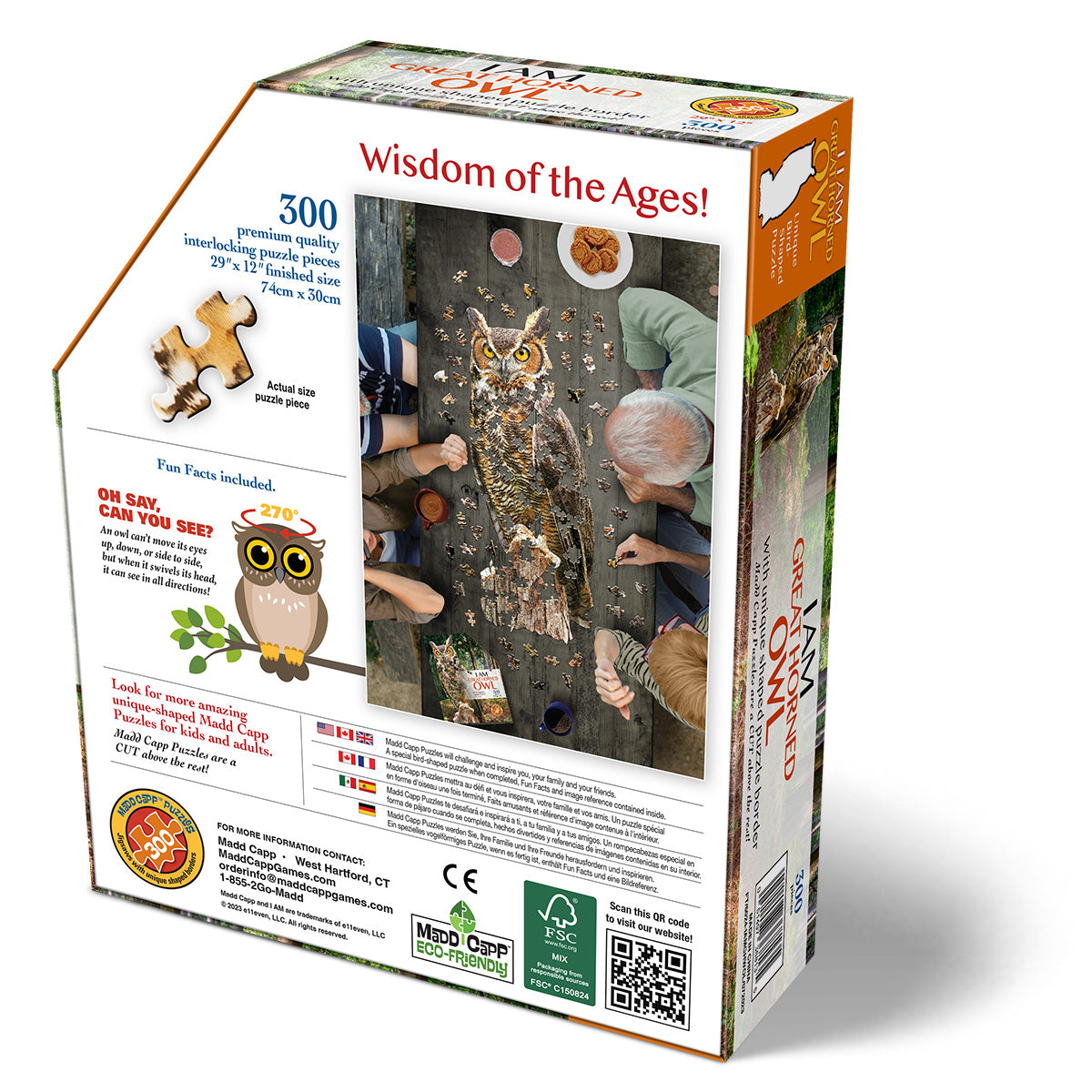 - AWARD-WINNING & AWE-INSPIRING, Madd Capp puzzles are big and beautiful and way more fun than your average 300-piece jigsaw! I AM GREAT HORNED OWL has a bird-shaped border (29" x 12" assembled).